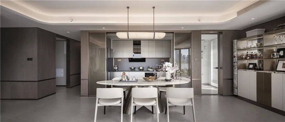 同时,这样的造型也最大化避免了业主的视线遮挡,从入户大门门厅就可远眺壮阔的江岸风光。