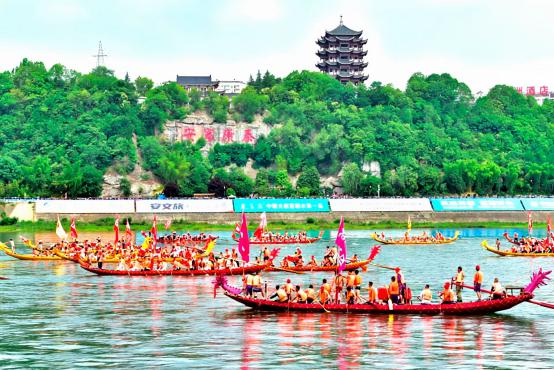 端午前后,龙腾汉江,龙舟文化园锣鼓喧天,龙舟竞渡,浪花飞溅,呐喊声、欢笑声回荡在江面上。市民们缅怀先贤、敬畏山水,健儿们奋力划桨、抓鱼抢鸭,祈愿风调雨顺、五谷丰登。
