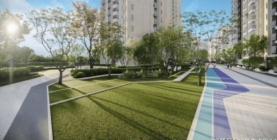 6.社区园林:约3.4万㎡围合内庭园林,约750m健康步道,带娃遛狗两不误;