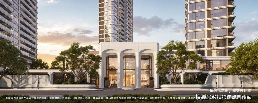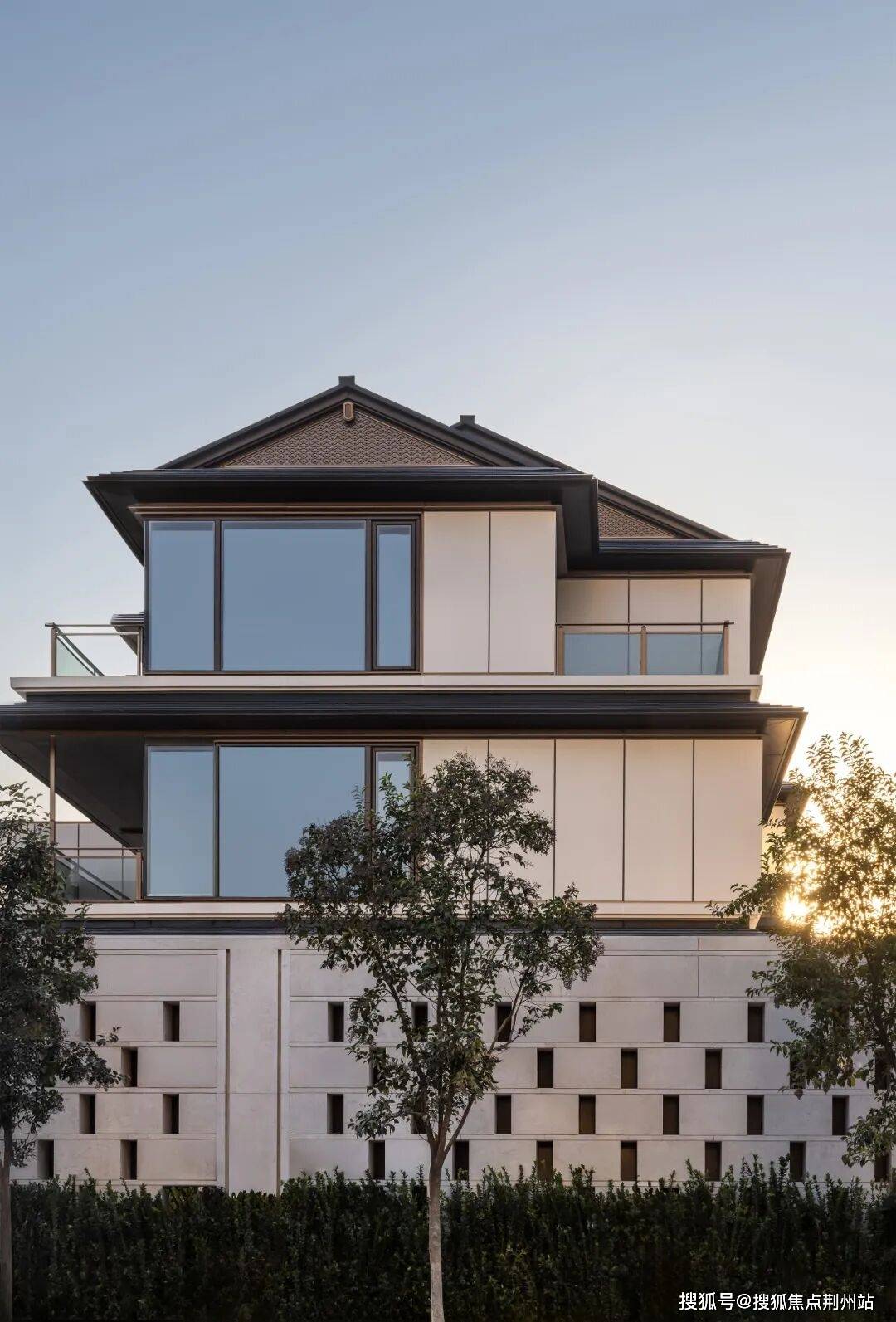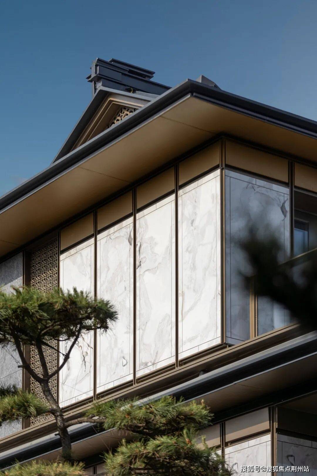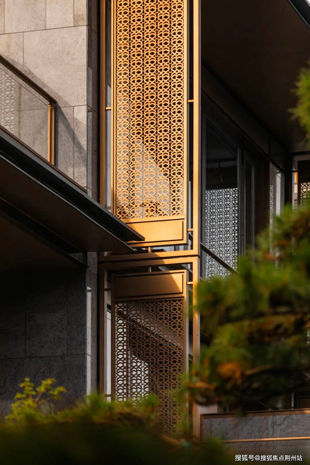 以“庐系”为例,每个项目在秉承“现代形,东方意”设计理念的基础上,融汇在地属性进行特别定制。如无锡逸庐,以吴文化的匠意传承为切入点,提炼出“白玉画屏”“金镂格栅”,结合歇山顶、传统装饰纹样的现代演绎,赋予外立面一种“古韵新生、苏作精琢”的形象。